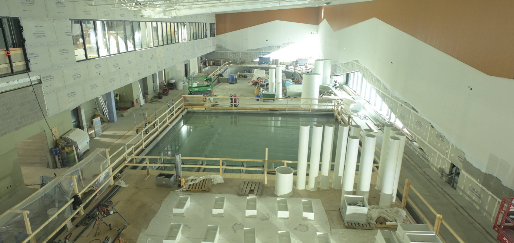 In the coming weeks, work will continue advancing interior finishes and completing the remaining mechanical, electrical, and specialty system tie-ins needed to support full commissioning. Pool-related work will remain a priority, including completion of outstanding testing, repairs, finishes, and associated equipment commissioning. Focus will also continue on final ceiling and finish installations throughout the natatorium and adjacent spaces.